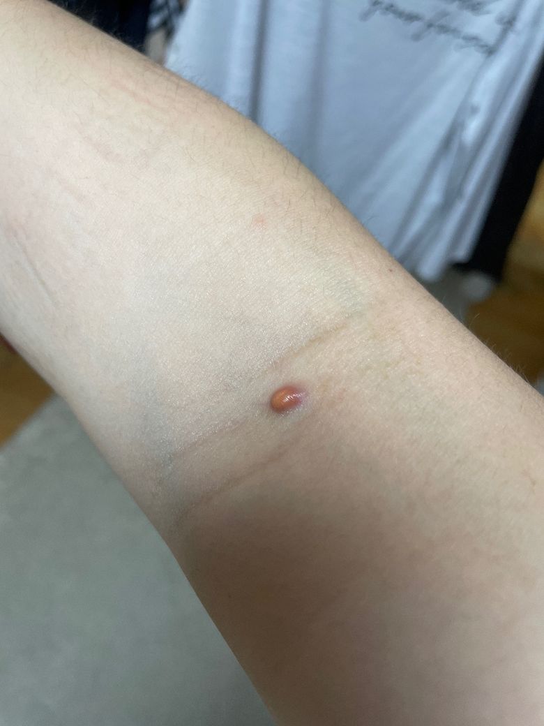 3월 말쯤에 경찰공무원 신체검사를 했었는 데 당시 주사를 맞고 사진 처럼 서서히 올라오더니 처음엔 가라앉겠지 하고 냅뒀습니다 그런데 아직까지도 이 상태고 통증은 없습니다 이게 뭘까요 …