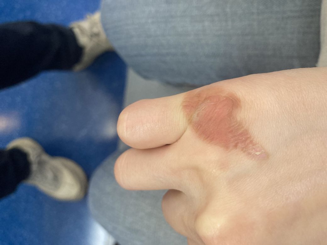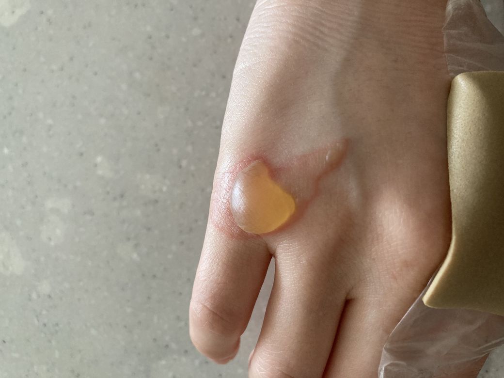 뜨거운것에 데이고 물집이 잡혀 다음날 바로 병원에서 치료를 받았습니다.