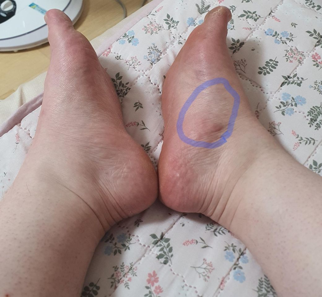 무릎 다치기 전에는 오히려 첫 번째 사진처럼 외측이 당기고 아팠습니다. 근데 이제는 오른쪽 발바닥 안쪽이 아프고 마지막 사진처럼 붉어지고 뭐가 튀어나오고 붓습니다. 안 걸으면 괜찮아요. 인터넷 아무리 뒤져봐도 저랑 비슷한 증상은 없어 어떤 질병인지 질문드립니다.