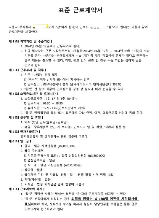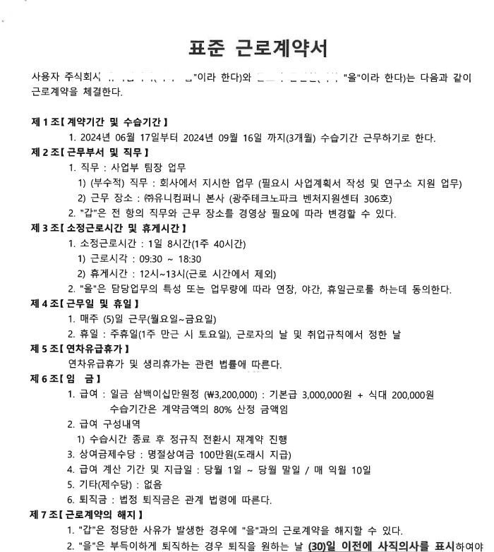 수습기간이 종료되어 정규직 계약을 하려고 하는데