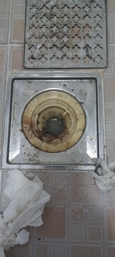 그거 보통 접착제로 붙어있습니다 이중으로 되어있는데 하나는 돌려서 살짝 빼면 빠지고요 그게 아니면 손가락으로 넣어서 머리카락 어느정도 빼셔야 합니다 보통 쇠로 된 망을 잘 쓰시는게 좋구요 염산을 들이 부어도 머리카락 생각보다 잘 안녹습니다 다른것만 녹아서 더 문제 생길수도 있어요