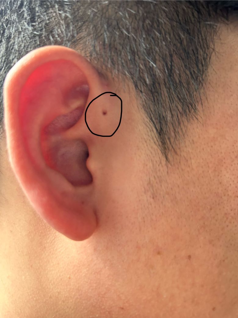귓볼 앞에 나타나는 병변에 대한 질문을 남겨주셨습니다.