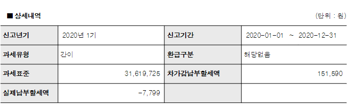 납부할세액은 (-)로 나왔으나 실제환급은 이뤄지지 않을 것으로 보입니다.