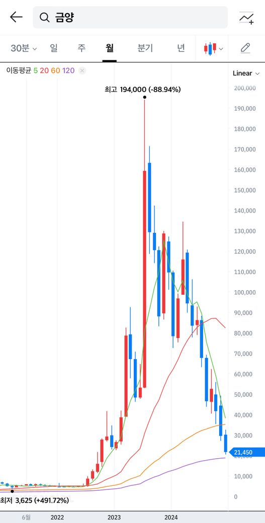 금양의 차트를 보면 정말 변동성이 어마어마하다고 보여지는데 사실 국내시장에서 중소형주 되는 종목들은 저런 움직임이 일반적이라고 할수있습니다.