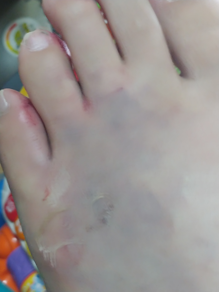 다행히 바로 병원에서 X-RAY를 찍은 결과로는 뼈에는 이상이 없다고 들었으나 하얀 파편이 새끼발가락 쪽에서 발견이 되어 CT까지 찍었고 최종 결과는 뼈에 이상이 없고 타박상을 판정 받았어요