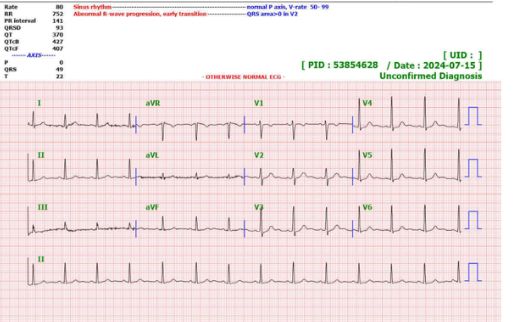 올려주신 심전도에서 특이한 이상소견은 관찰되지 않습니다.