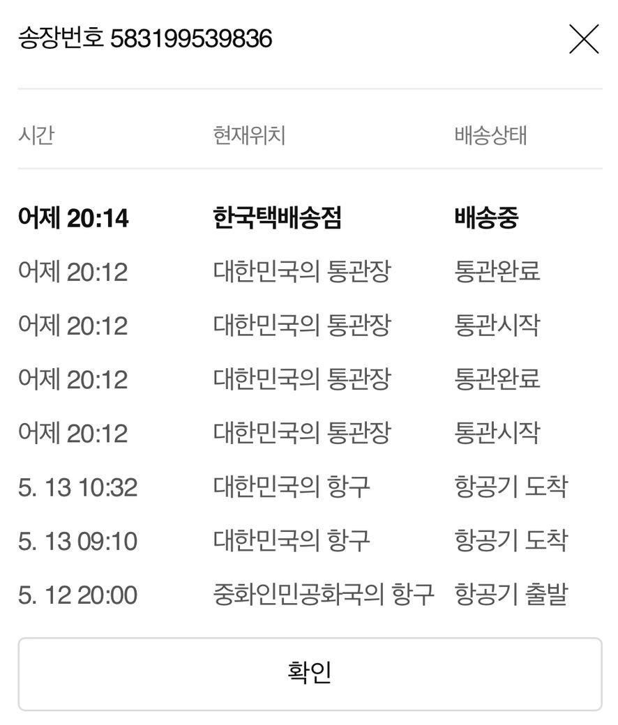 택배사로 이동중이라는 뜻일까요? 쿠팡 직구 택배사는 cj대한통운로 알고 있는데 맞나요?(583199539836)