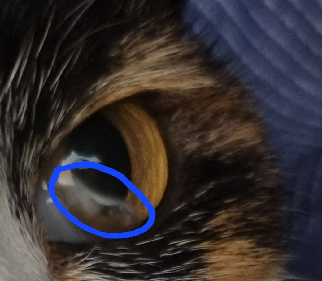각막의 침착이 있는 상태로 대사증후군부터 각막의 손상 등 다양한 원인을 생각해야 하니 안과 전문 동물병원에 데려가서 진료 받으시기 바랍니다.