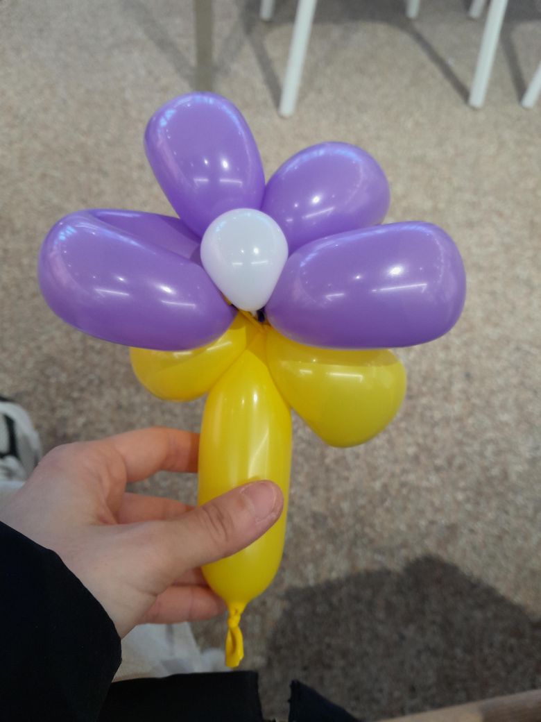 풍선 한개로 조그맣게 묶어 반을잘라 두번접어꼬기하고 또 반을 두번접어꼬기해서 자른것끼리 묶었어요.데이지꽃잎 4개돼버렸는데 이벤트행사랑 오프라인 간단하게 팔아버리기엔 부족해요?