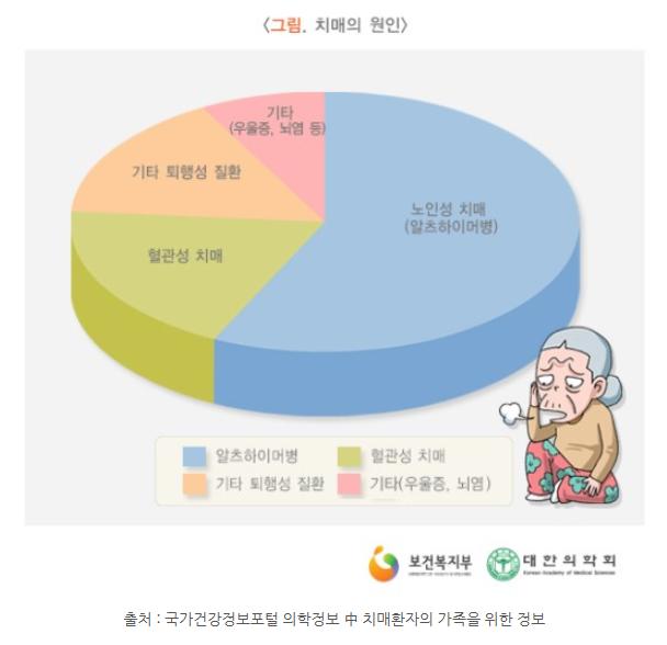 거의 대부분의 차지하는 것은 알츠하이머 병 그리고 혈관성 치매라고 생각하시면 되겠습니다.
