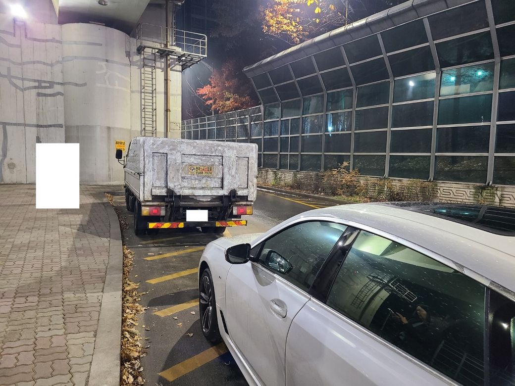 트럭 기사분께서 후방을 확인하지 못하고 후진해서 다치게해서 미안하다고 하시고 가셨는데