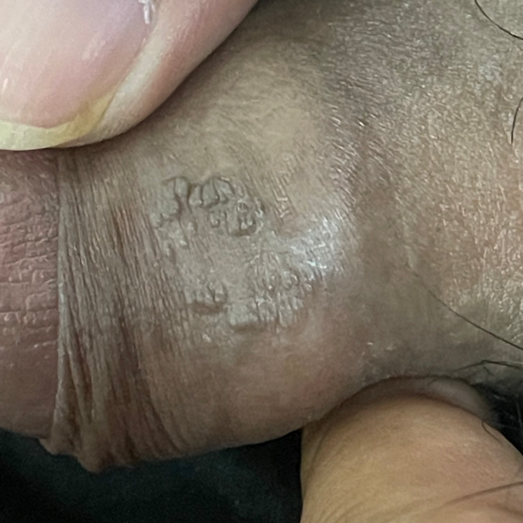 곤지름, 사마귀, 헤르페스 등 성병의 가능성이 있어 보입니다. 정확한 진단은 비뇨기과에서 보다 정확한 문진과 신체검사 후 가능하니 병원에 내원하셔서 진료 및 치료를 받는 것을 권유드립니다.