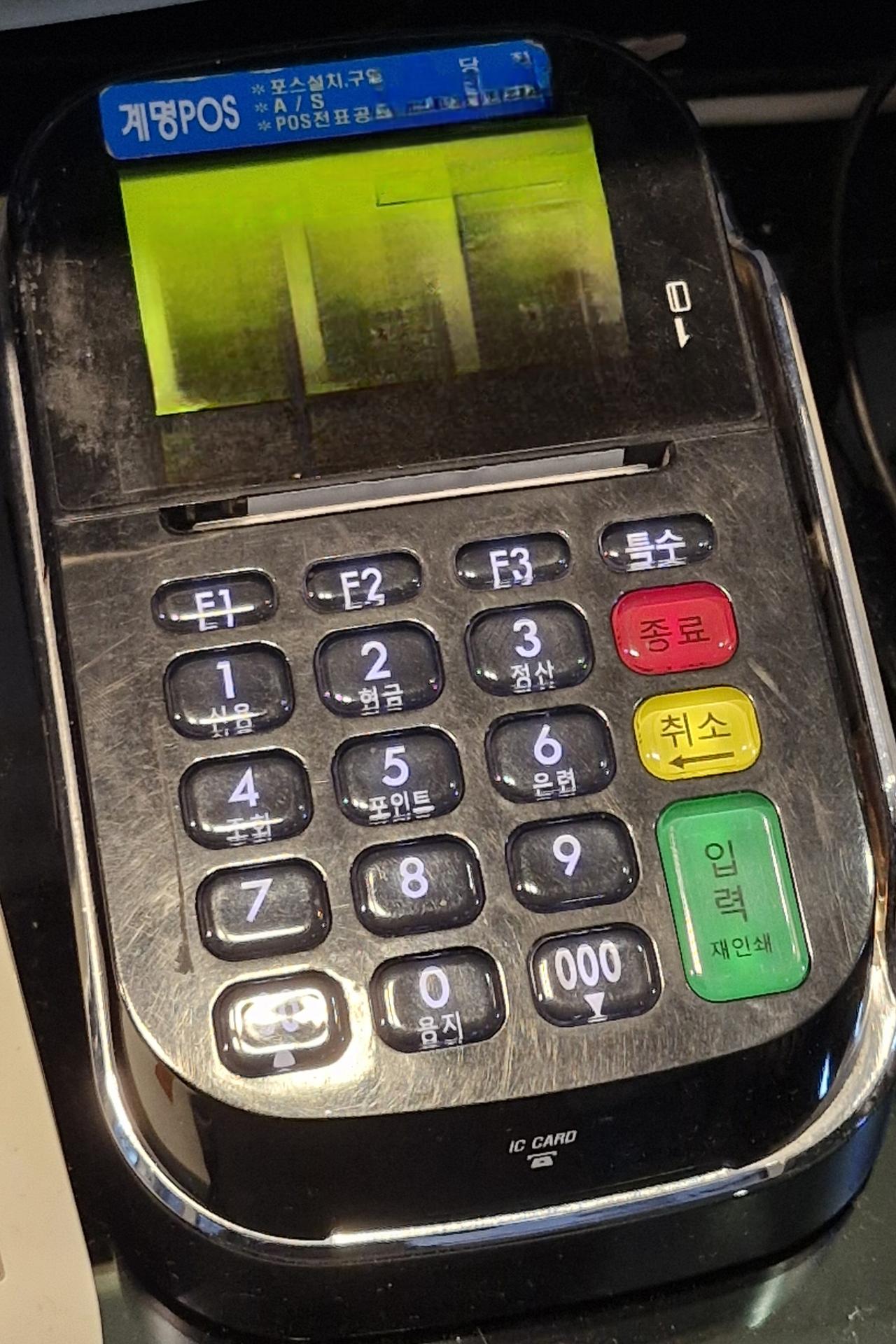 혹시 이렇게 생긴 포스기 사용해보신 분 계실까요? 번호 결제시 영수증이 안 나와서 승인번호를 봐야해요! 그런데 승인번호 다 적기도 전에 꺼져버려서 못 보게 되었어요.. 이전 결제 재인쇄는 다른 카드가 되어있어서 방법이 있을까요? 자세히 알려주세요!!