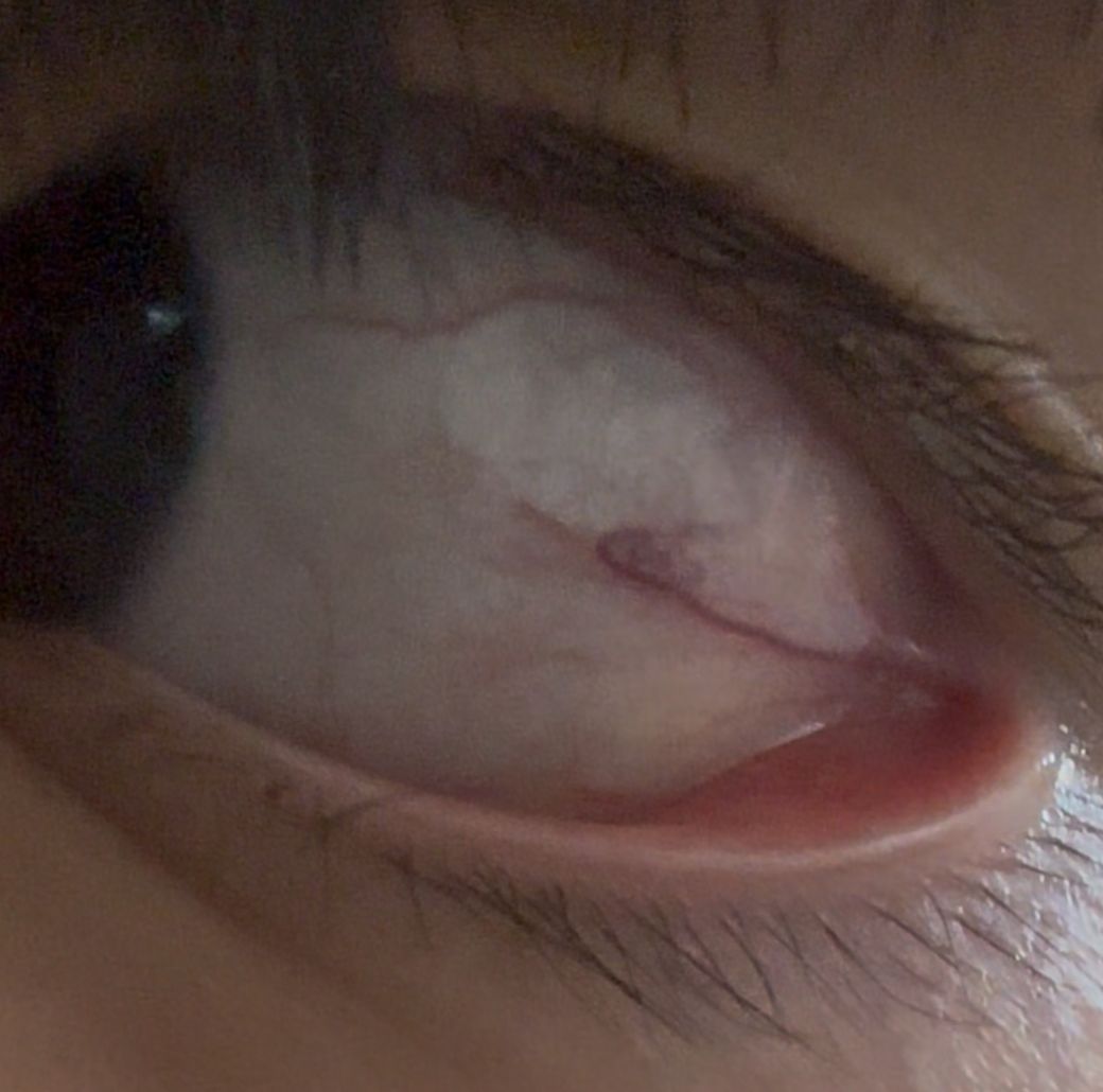 눈에 이물감이 느껴지고, 사진을 찍어보니 무언가 생겼습니다. 혹시 이게 뭔지, 위험한 건지 알 수 있을까요??