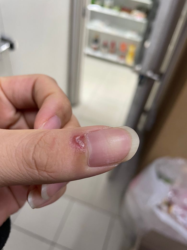 이후 흐르는 물에 피를 씻어내고, 마데카솔을 바른 후 밴드를 붙였습니다.