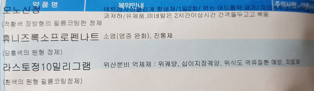 라스토정을 빼고 밑에있는 위장약으로 복용하시면 됩니다.