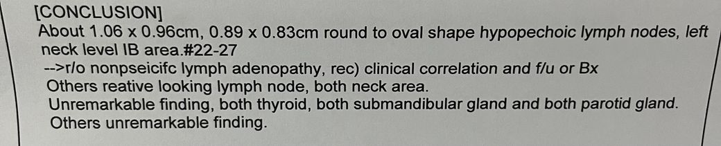 임파선 멍울 때문에 초음파를 찍었습니다. 임파선염 같다고 하시는데