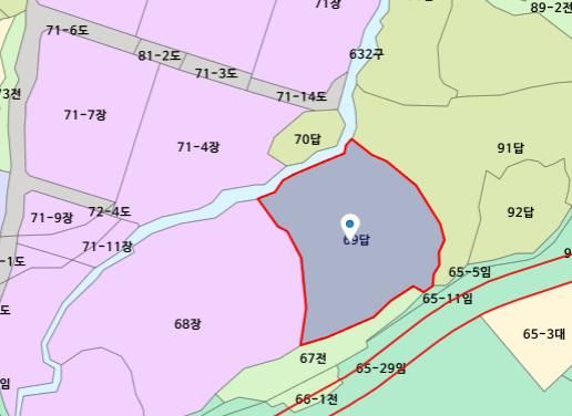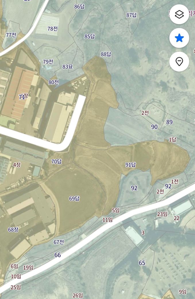 사진 상 69답, 70답이 저희 땅이고 위 도로는 공장입니다