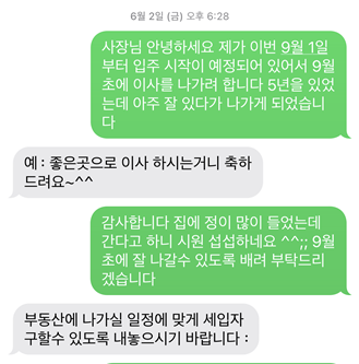 제가 분양을 받게 되어 9월에 입주를 시작하게 되는데, 작년 5월 경에 9월초에 집을 나가게 될 것 같다고