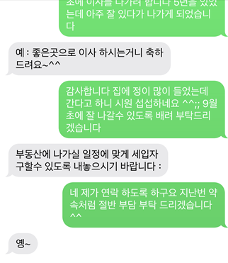 이때 집주인이 세입자를 알아보기 위해 부동산에 연락을 해달라고 해서 알겠다고 하고, 제가 부동산에 연락을 해주었습니다.