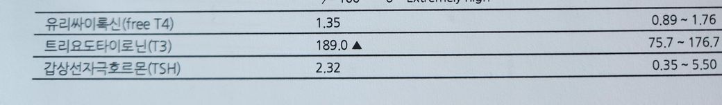 freeT4, TSH가 정상이며 T3도 정상범위와 많이 차이나는 것이 아니기 때문에