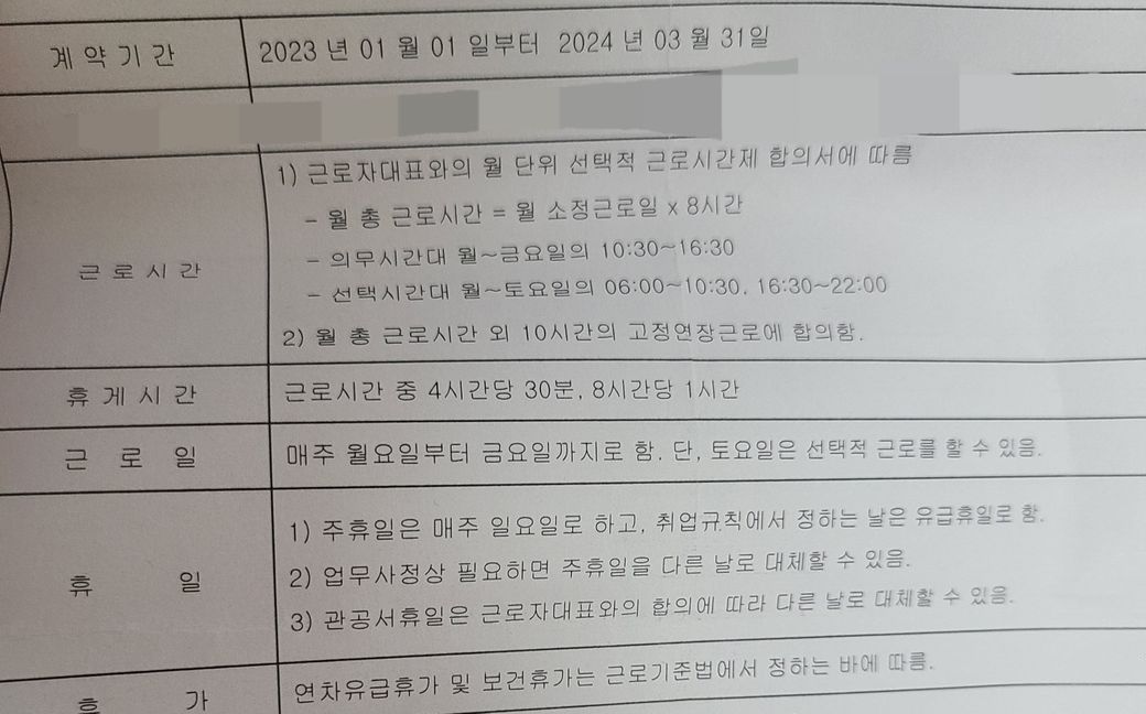 첨부 근로계약서 참고부탁드립니다