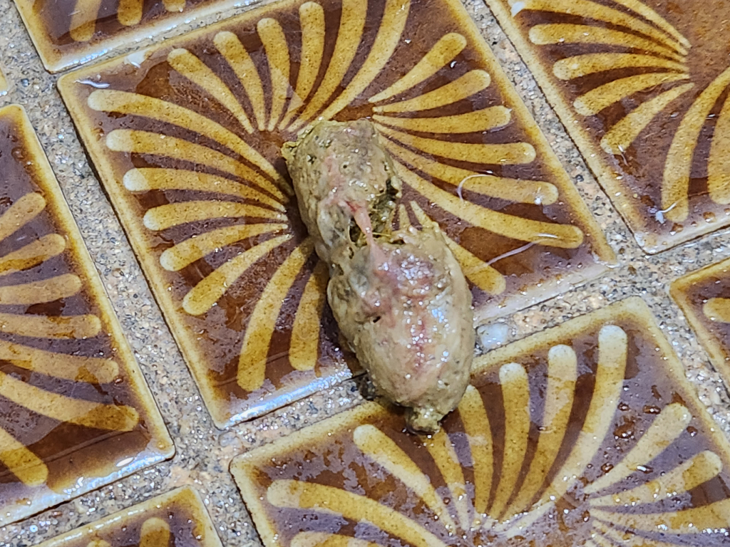 만약 암적색의 진하고 검붉은 빛의 혈흔이 관찰된다면 바로 동물병원에 데려가셔야 합니다. 이것은 감염성질환, 소화기질환, 종양, 장내출혈 등의 가능성이 있습니다.