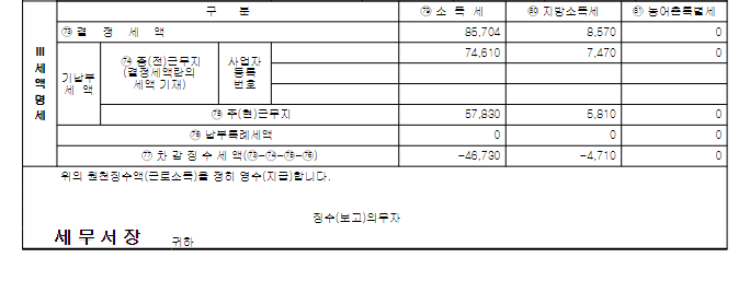 퇴사 후 A업체에서 원천징수 영수증에 기재된 납부 세액을 내야 한다고 해서 송금했습니다.