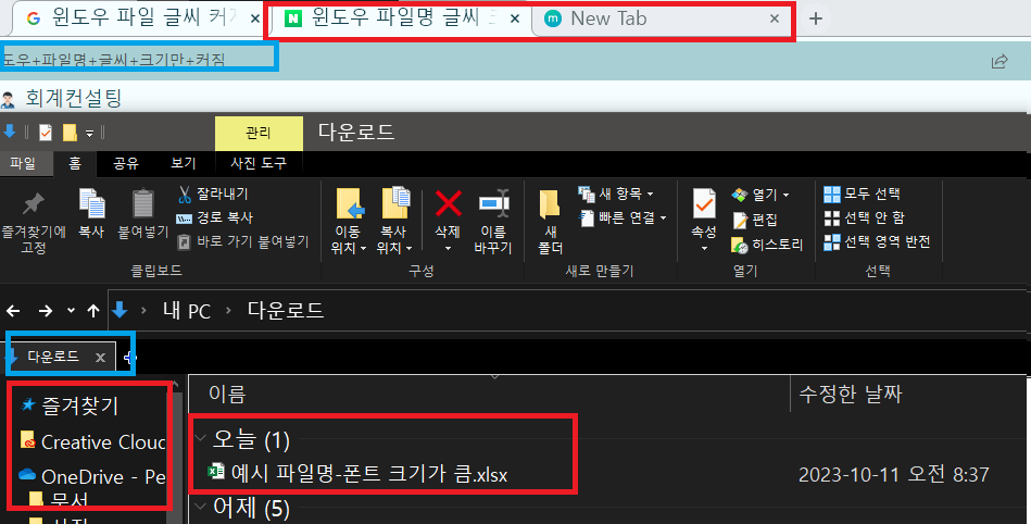 윈도우10에서 일부 텍스트 크기만 커졌습니다 어떻게 조정할 수 있을까요?
