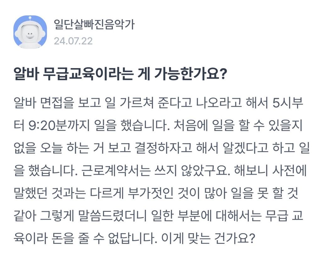 실제로 일을 한 부분이 있는데 무급교육이 가능할까요?