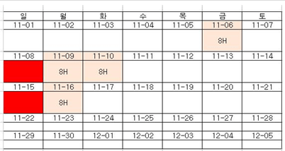다음주도 동일한 방식으로 주휴일 발생 여부를 판단해야 하는데, 이 경우에는 주 소정근로시간이 15시간 이상이므로 11월 15일에 주휴일이 발생한다고 봅니다.