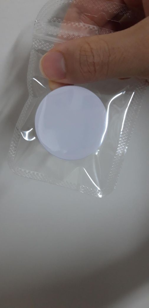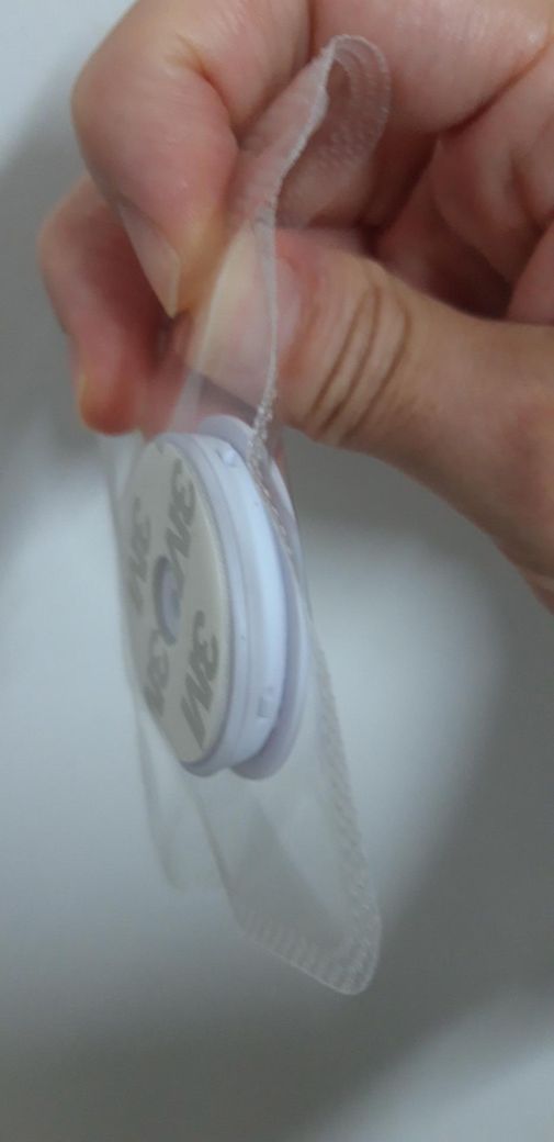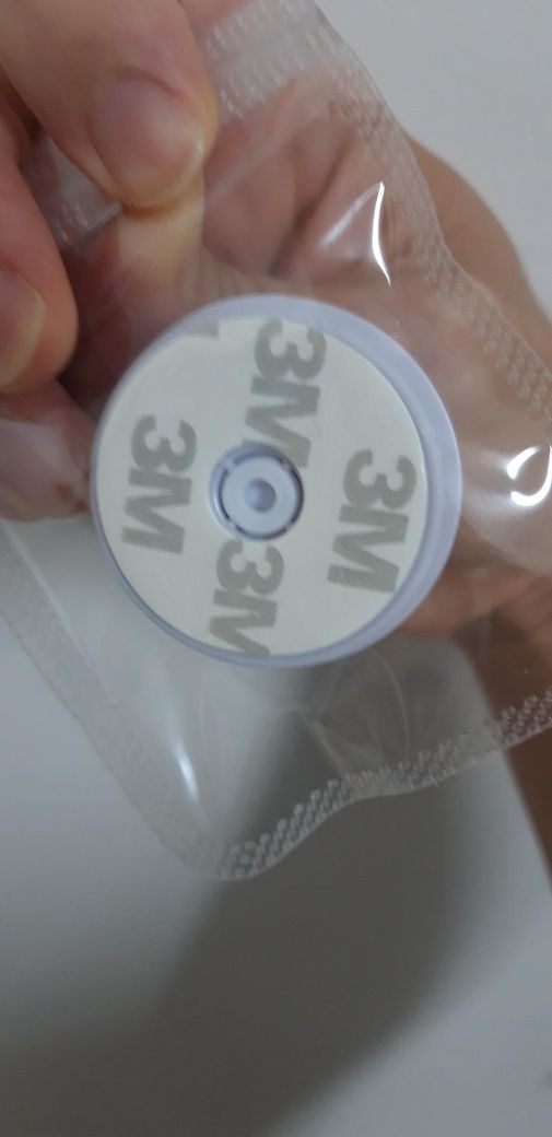 아마 그립톡인 거 같습니다. 테이프도 있는 거 보면 가장 흔하게 볼 수 있는 동그란 형태입니다. 손가락 사이에 끼워 안정적으로 잡게 해주거나 영상 볼 때 거치대 역할을 합니다.