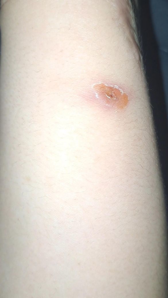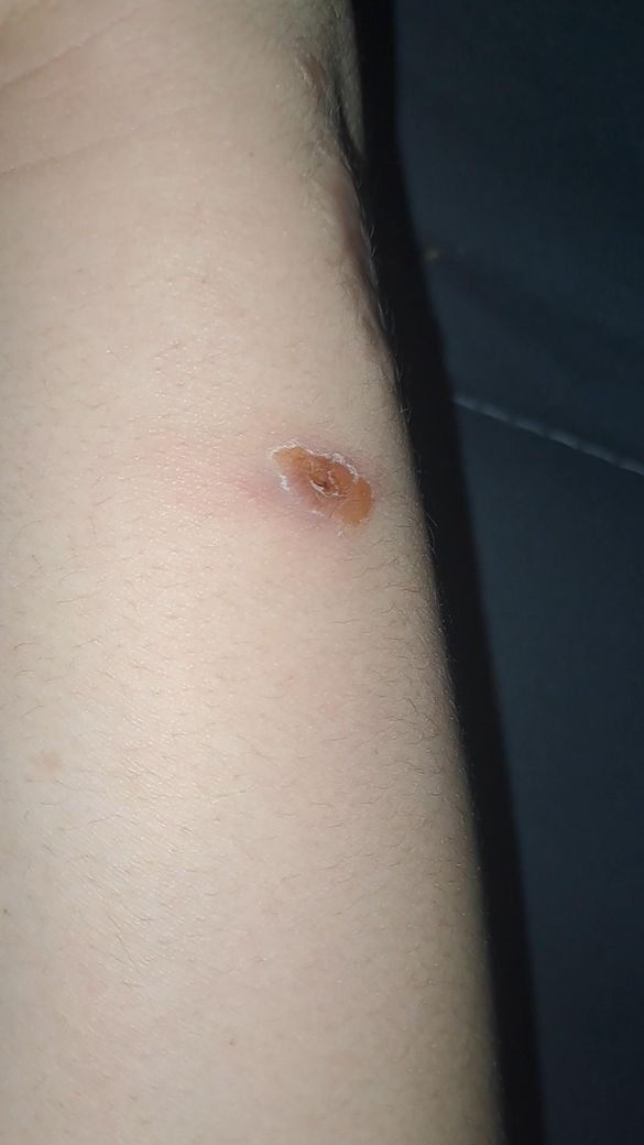 9일 지난 화상상처인데 처음에는 물집이생겨 안터트리고 지냈는데 물집이 사라지고 화상부분이 딱딱해졌습니다.