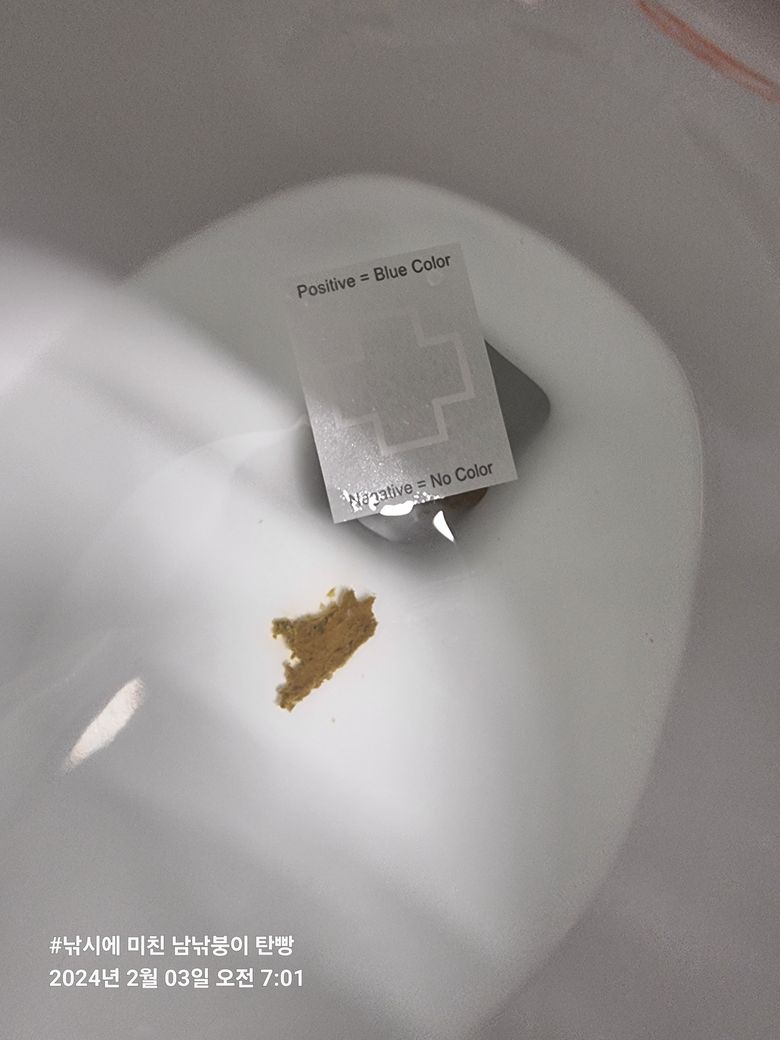 숨은 혈변이 있는 경우 2분내에 검사지에 청록색 모양이 나타나게 됩니다.