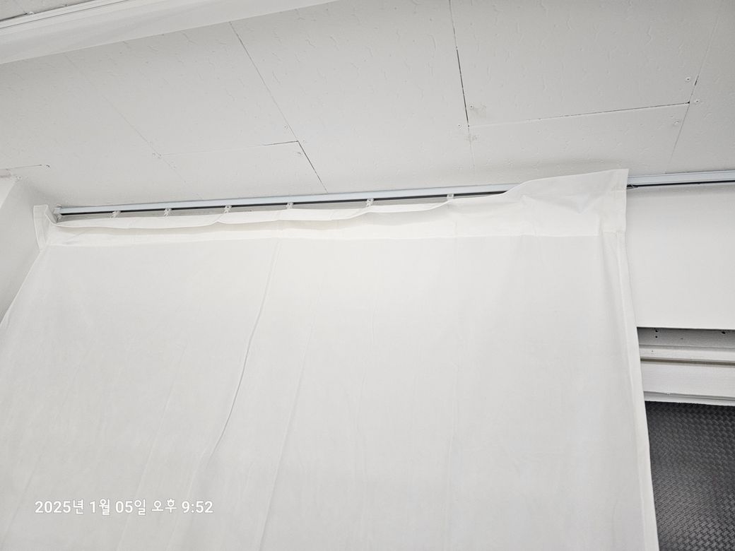 커튼 윗부분이 단단한?힘있는 재질이 아니라 사진처럼 앞으로 꼬꾸라지는데요 세울방법이 있을까요?
