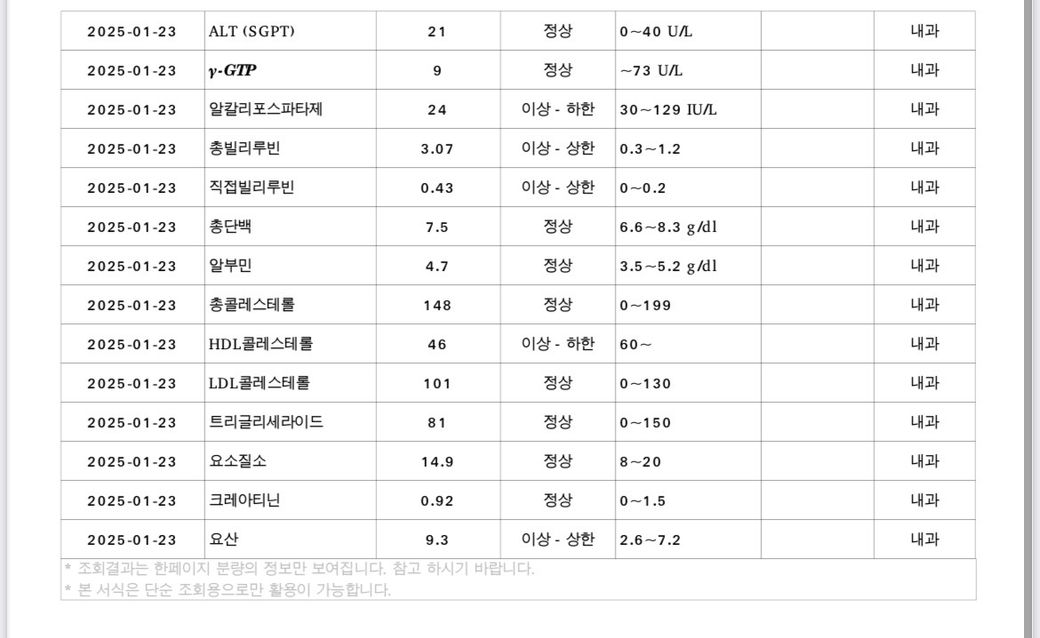 1. 요산수치랑 빌리루빈(?)들이 기준치를 많이 벗어난거 같은데 어떻게 생각하시나요? 심각한건가요?