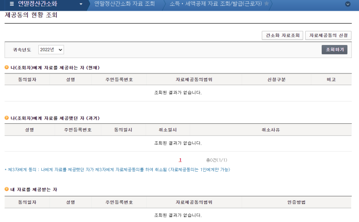 (사진첨부)지금 제가 연말정산 간소화 서비스에 정보제공이 되어있는 상태인가요?
