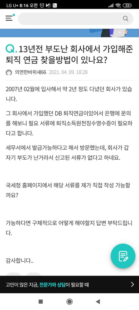 퇴직소득원천징수영수증을 퇴직한 근로자가 작성가능할까요?