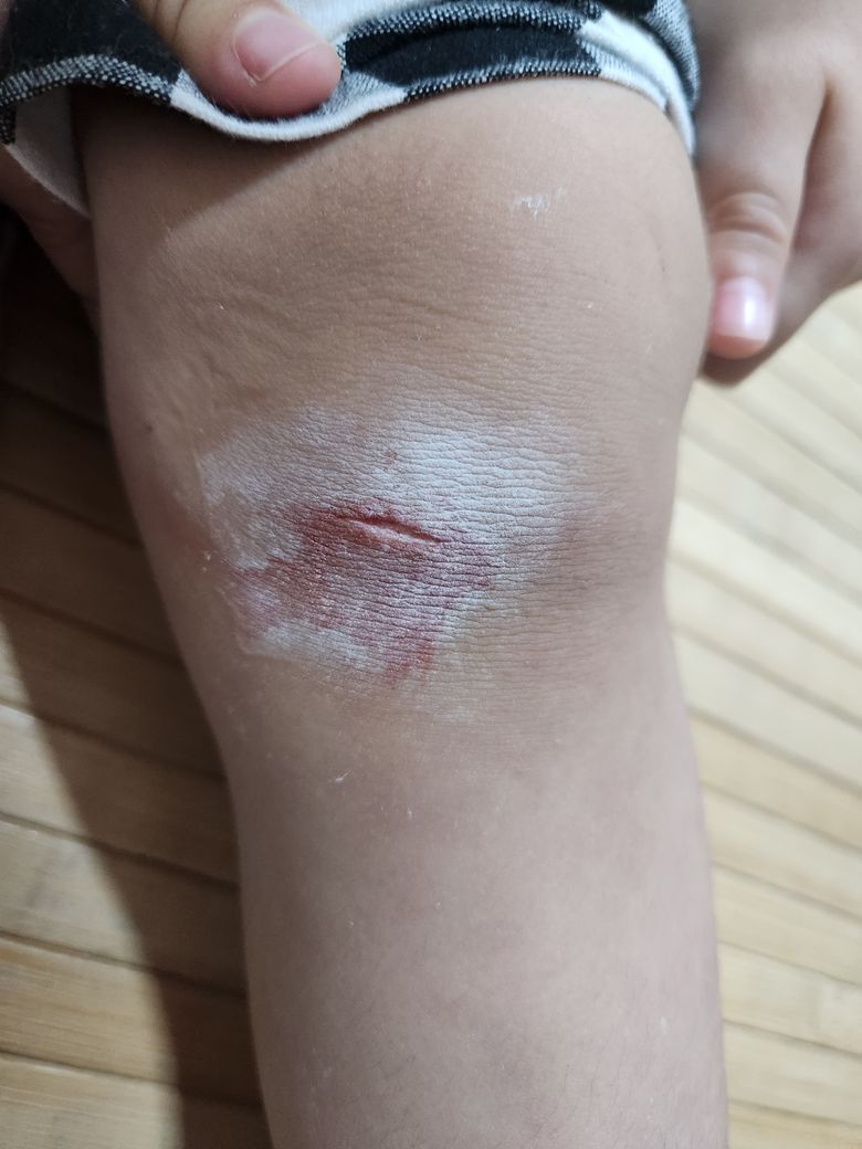 아기 무릎이 베여서 상처가 생겼습니다