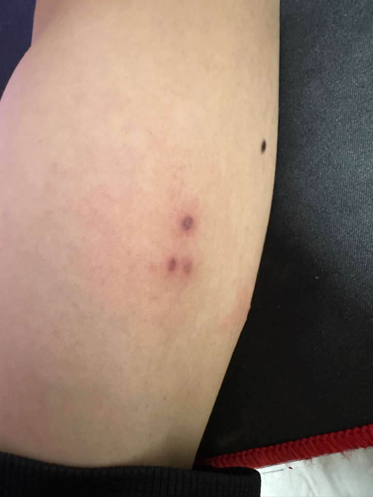 벌레의 종류까지 추정하기는 어렵겠지만 1주 넘게 지속되는 병변으로 불편하고 걱정스러우시다면 가까운 피부과에서 진료를 받아보실 수 있겠습니다.