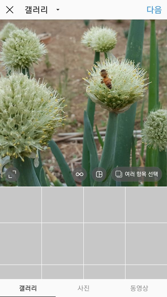 인스타그램에서 사진을 선택하려는 단계에서 사진이 모두 회색으로 보입니다.