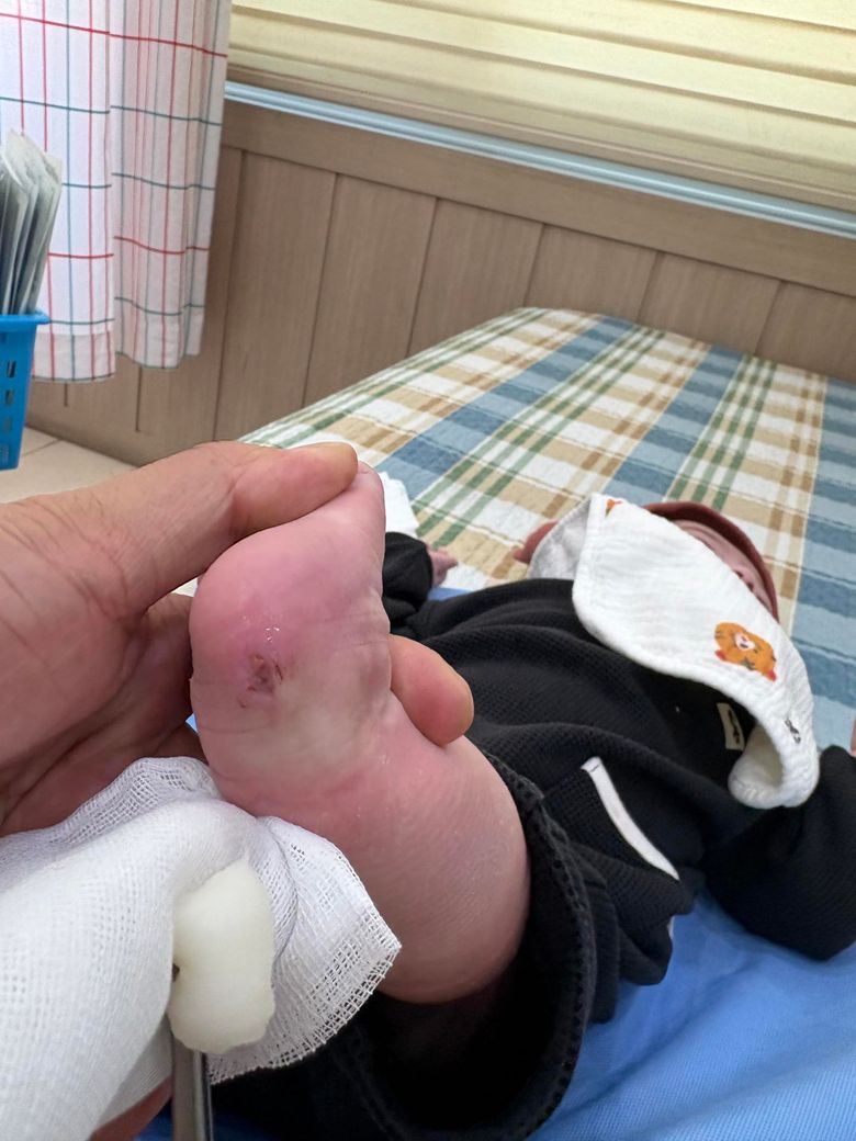 입원했는데 발쪽링거놓고사진처럼이런게됐는데링거뺄때간호사가이것은혈관터진거라고 냅두면알아서살아진다고했ㄴ데1주일후 소아과갔는데 이거성형외괴가봐라해서 가봤는데이거치료해야한다고해서 했습니다 근데 상처가깊고 염층도많고 괴시됐는데 이거 입원한쪽병원에 의료사고소송가능할까요