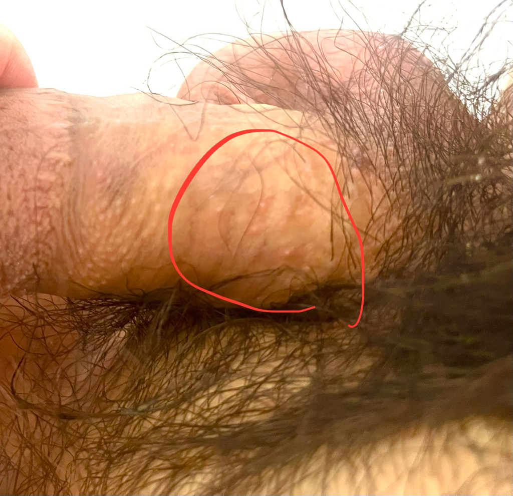 모낭염 또는 헤르페스 가능성이 있으니 비뇨의학과 진료를 추천드립니다.