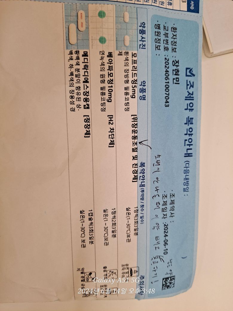 충무 약국에서 처방 받은 소화제 계열 (아침약)을