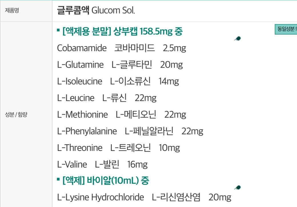 30일전부터는 글루콤과 메모큐액을 함께 복용하려고 합니다.(영양성분표 첨부합니다)