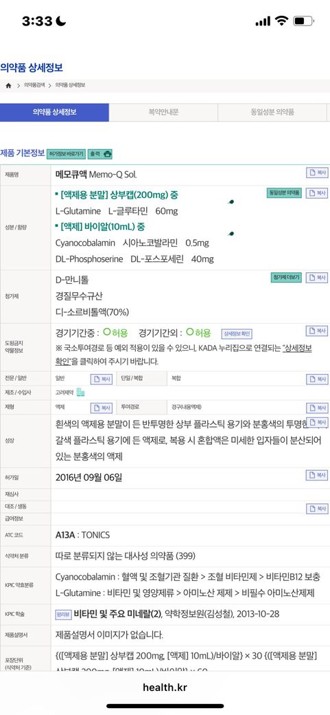 현재 매일 아침 공복에 메모큐액을 먹고 있고