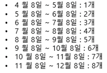 → 12월 8일 ~ 1월 8일 : 1개 생성