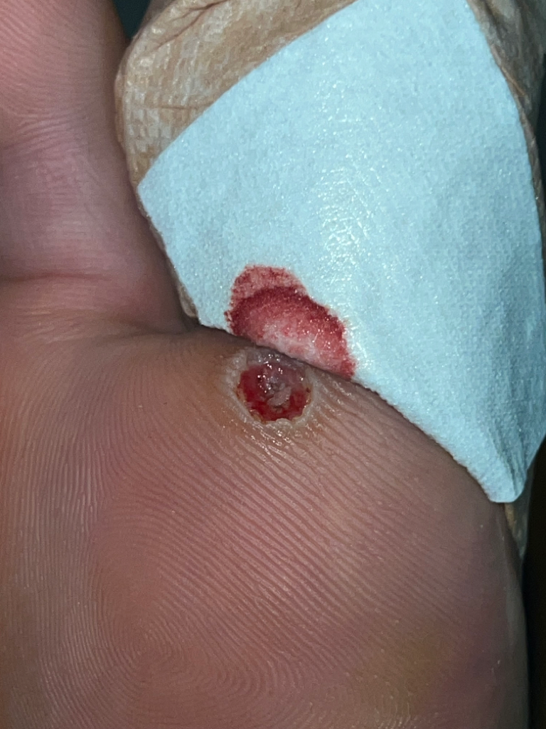 검은색 점으로 보이는 부분은 사마귀가 남은 부분인지, 지혈된 혈관인지 알기가 어렵습니다.