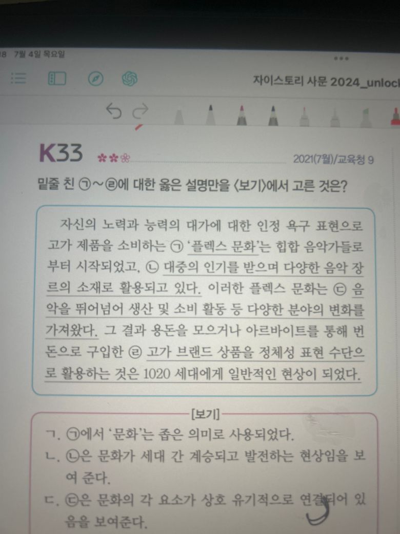 2024자이를 풀고있는데 해설지가 없어서 이유를 잘 모르겠어요 'ㄴ'이 문화의 속성?중에 무엇인지 알려주세요!!!!!!!