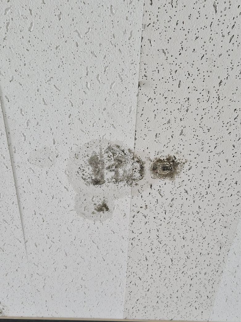 안녕하세요. 사무실 천장에 누수가 있는 걸로 보입니다. 누수가 있어서 곰팡이가 생긴것 같습니다. 일단 누수부터 확인을 하시고 수리를 하시는게 중요 할듯 합니다.그리고 곰팡이 제거제를 이용해서 곰팡이를 제거 하시면 됩니다. 여름철에는 비가 많이 오기때문에 누수가 자주 발생하게 되는데요. 누수가 생기면 바로 바로 수리를 해야 곰팡이가 생기지 않습니다.